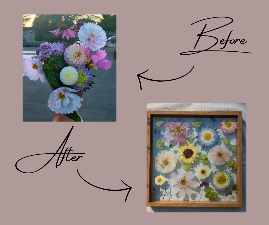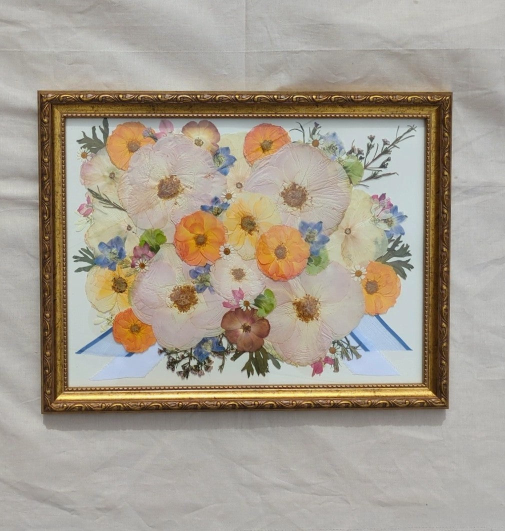 We will create different mock-up layout designs for you to choose from! Once a layout is approved by you, we will secured the flowers into your frame!